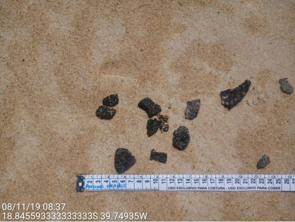 Primeiros fragmentos de óleo chegam à praia de Guriri, em São Mateus