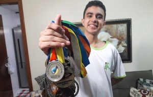 A trajetória de olimpíadas de matemática vem desde 2015, quando conquistou a medalha de prata. De lá para cá, o terceiro ouro. Ele só não sabe em que colocação ficou em 2016 porque, nesse ano, a olimpíada apresentava os medalhistas por ordem alfabética.