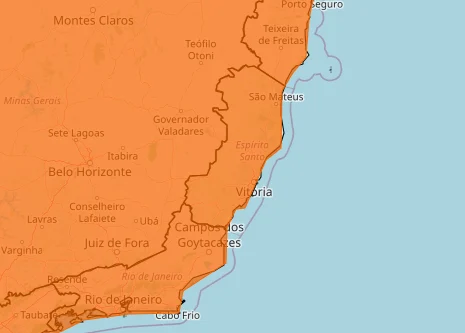 O Instituto Nacional de Meteorologia (Inmet) emitiu um aviso na cor laranja, que indica perigo para ocorrência de chuvas intensas em todos os 78 municípios do Espírito Santo. Esse alerta é válido até às 23h59 de sexta-feira (27).